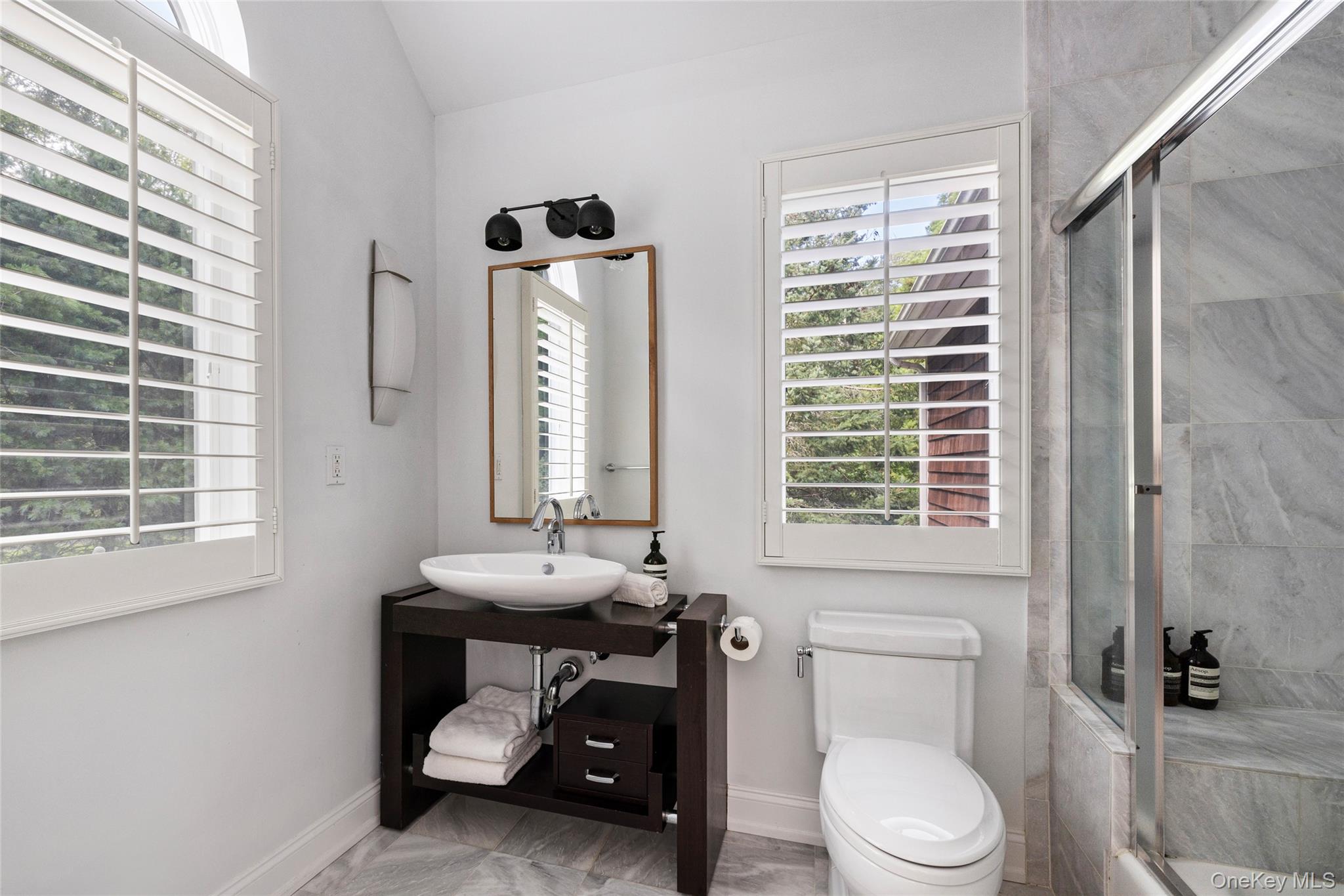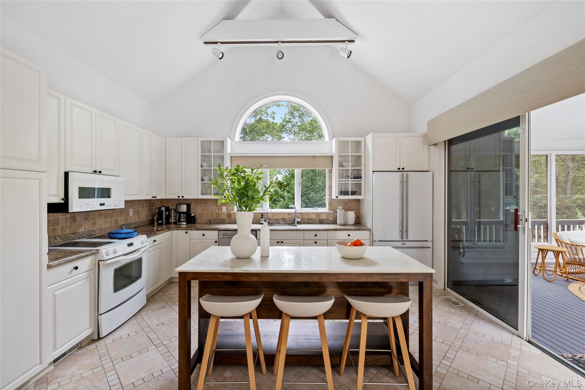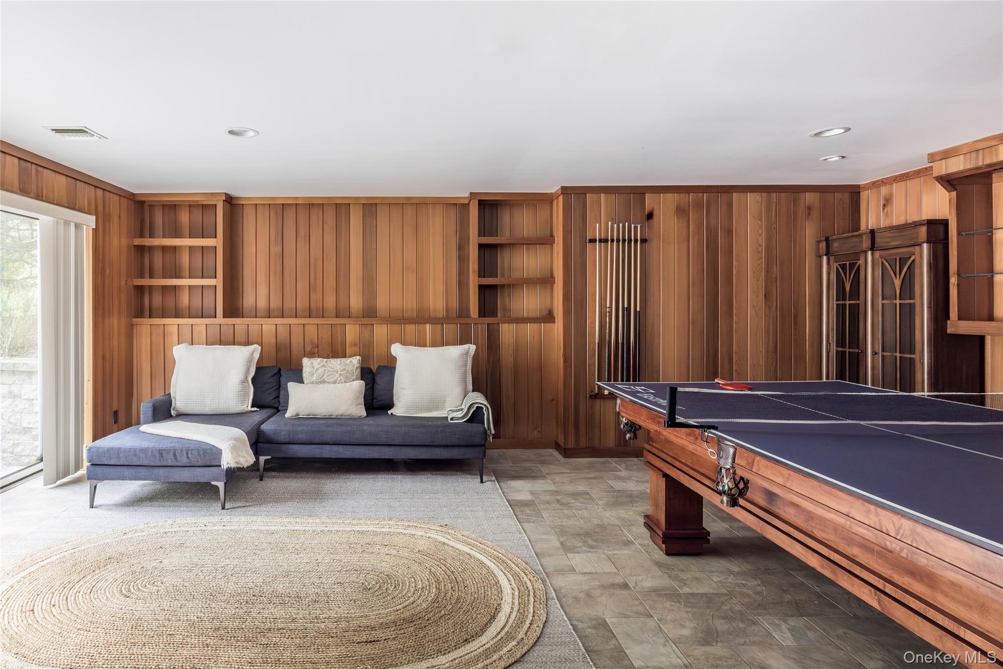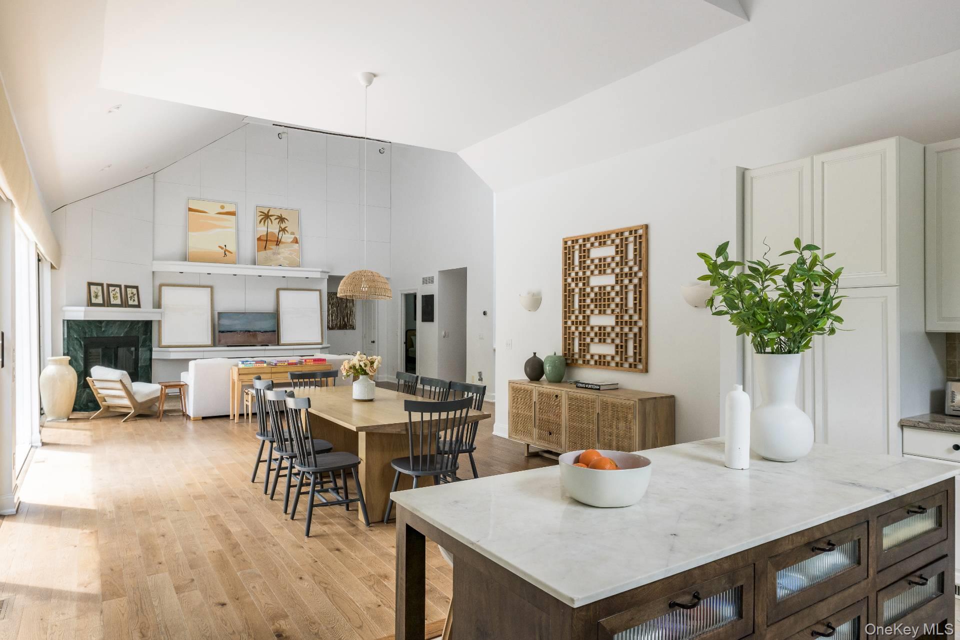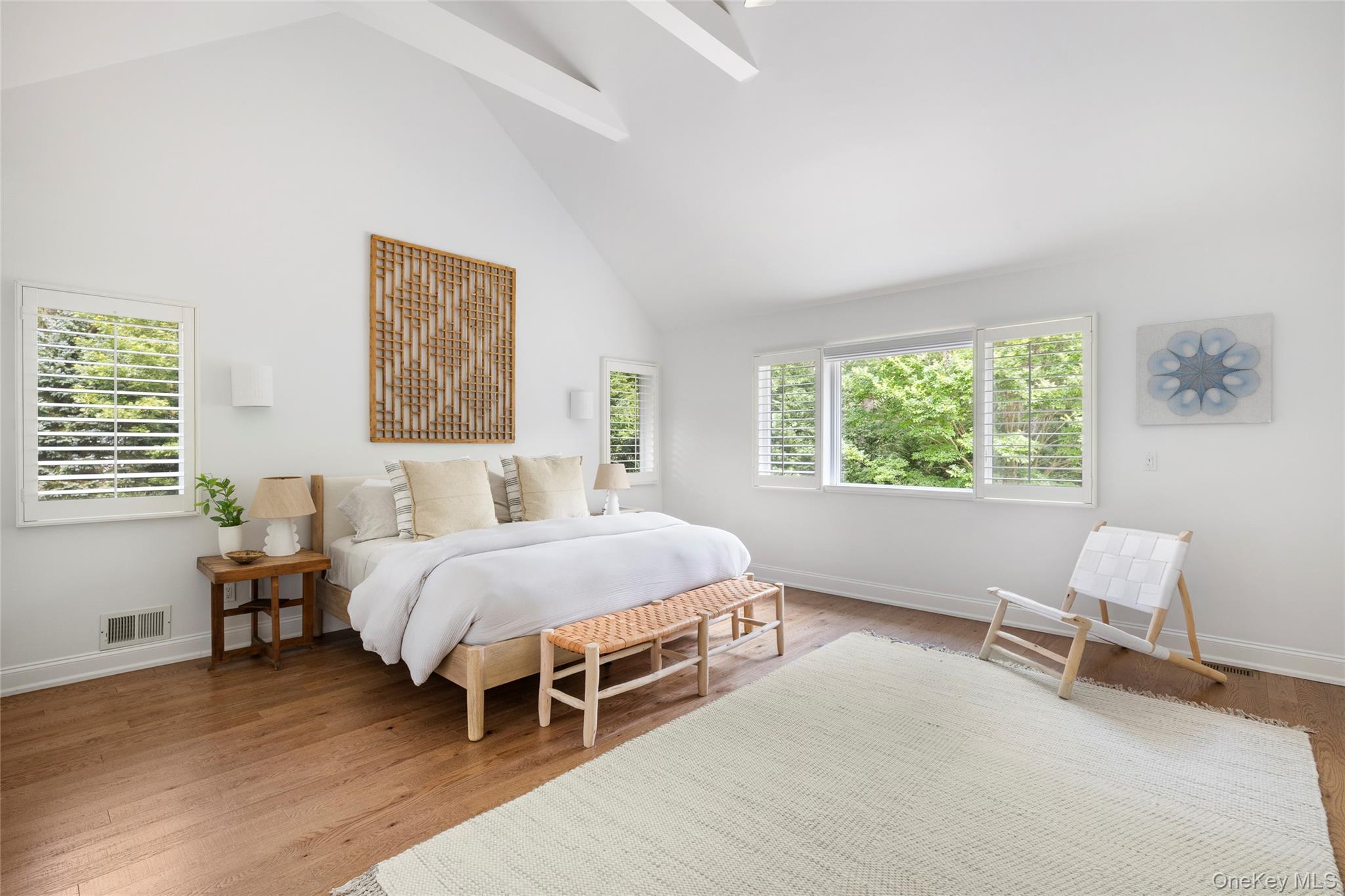 Privately set at the end of a long drive and framed by lush, mature landscaping, this turnkey 4-bedroom, 4-bath residence offers over 4,500 square feet of thoughtfully designed living space on 1.28 manicured acres. Inside, soaring ceilings and a sun-filled great room with fireplace create a bright, welcoming atmosphere, flowing naturally into the open kitchen and screened-in porch for effortless everyday living and entertaining. The main level features a serene primary suite along with two additional ensuite bedrooms, offering a comfortable and well-balanced layout. The finished lower level extends the home's versatility with generous lounge areas, bonus rooms, a full bath, and direct access to the yard-ideal for recreation, guests, or flexible use. Outdoors, the property is anchored by an oversized pool, expansive sundeck, and multiple areas designed for dining, relaxing, or entertaining, all surrounded by landscaped grounds that provide privacy and a sense of retreat. Located just minutes from Red Creek Pond, as well as bay and ocean beaches, waterfront dining, and local vineyards, this Hampton Bays home offers a rare combination of privacy, scale, and proximity to the best of the area.